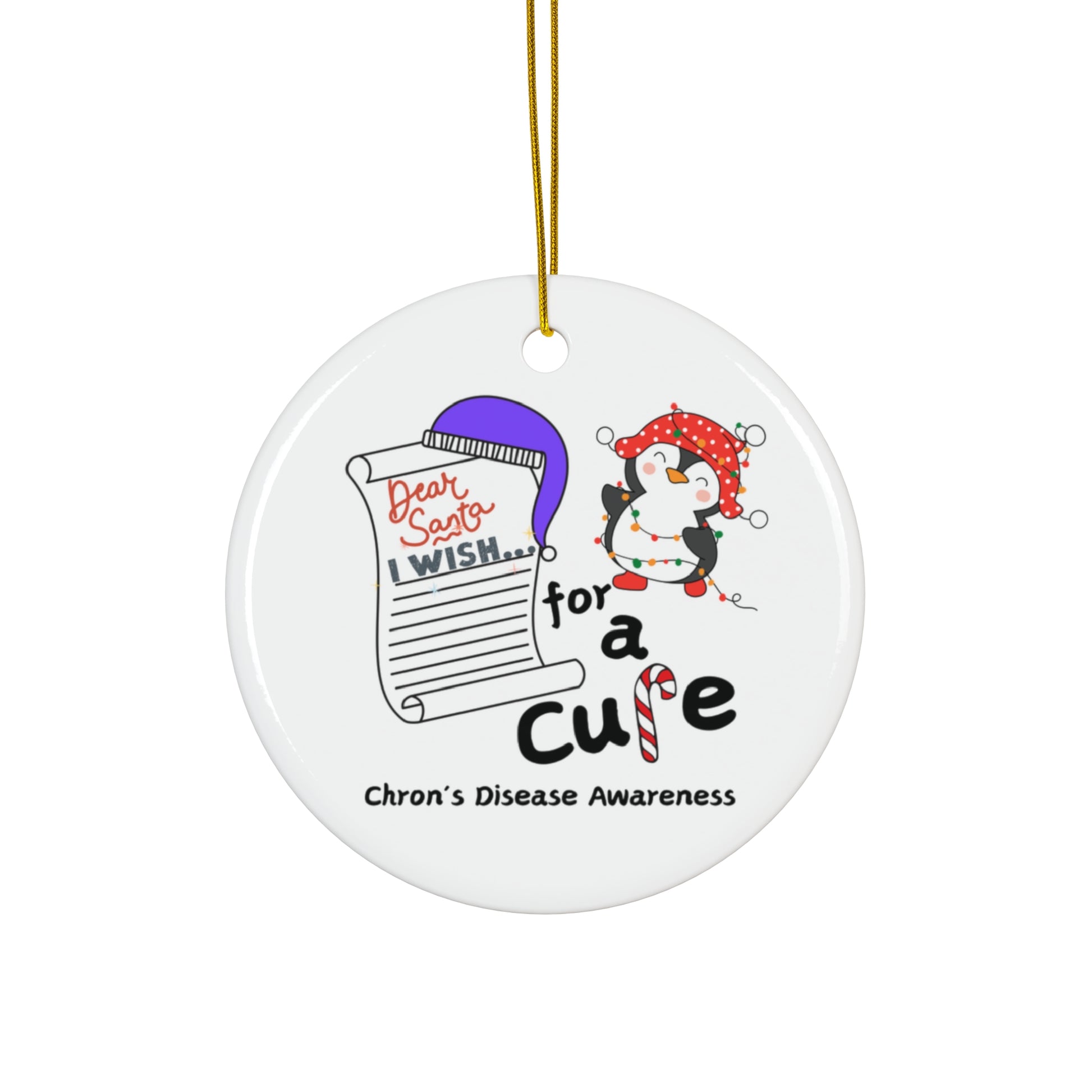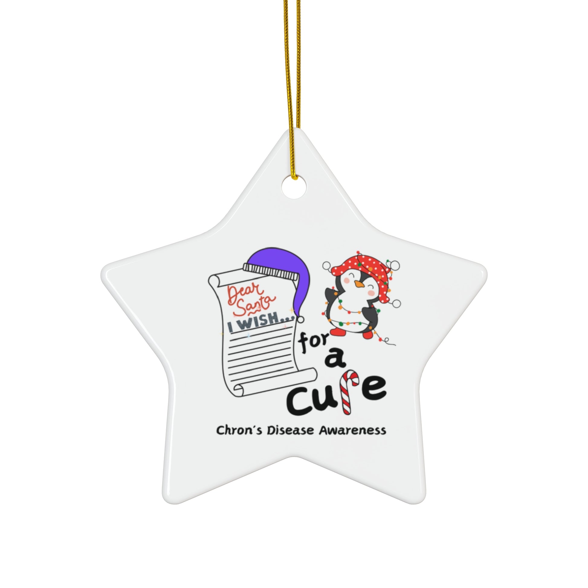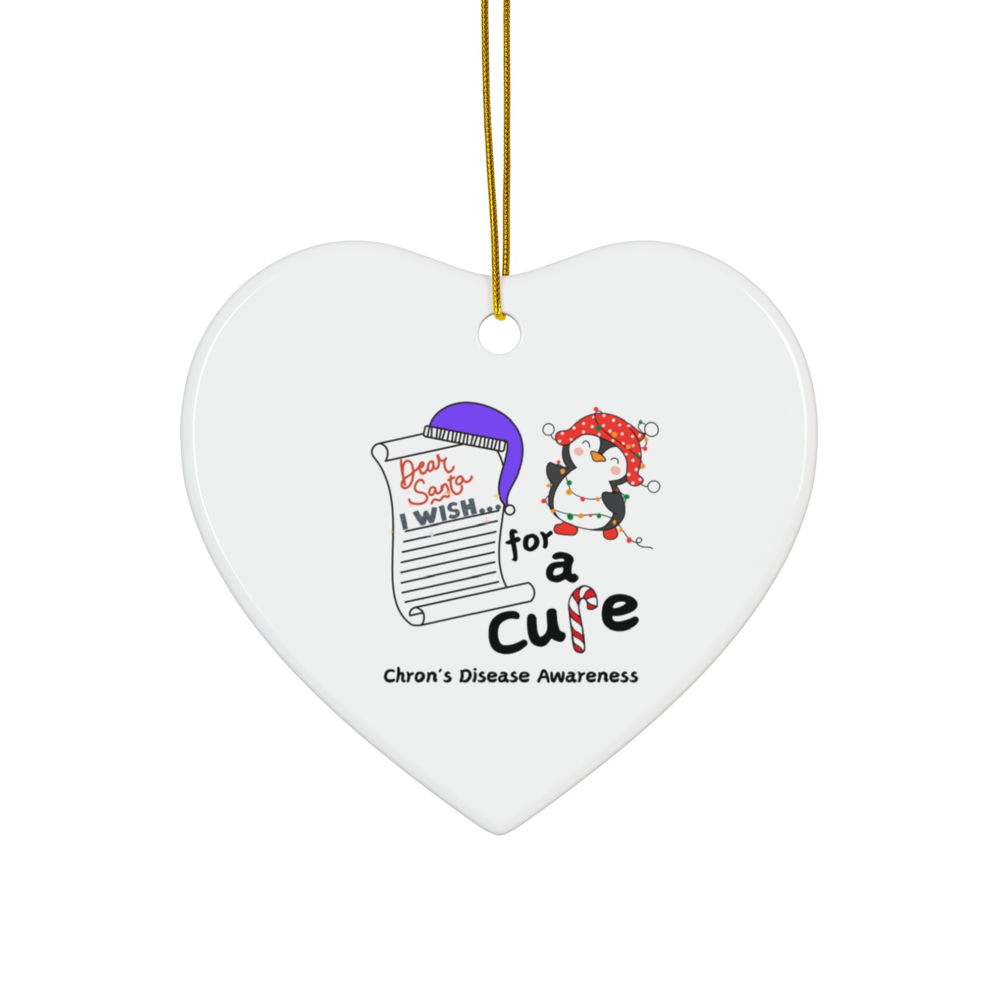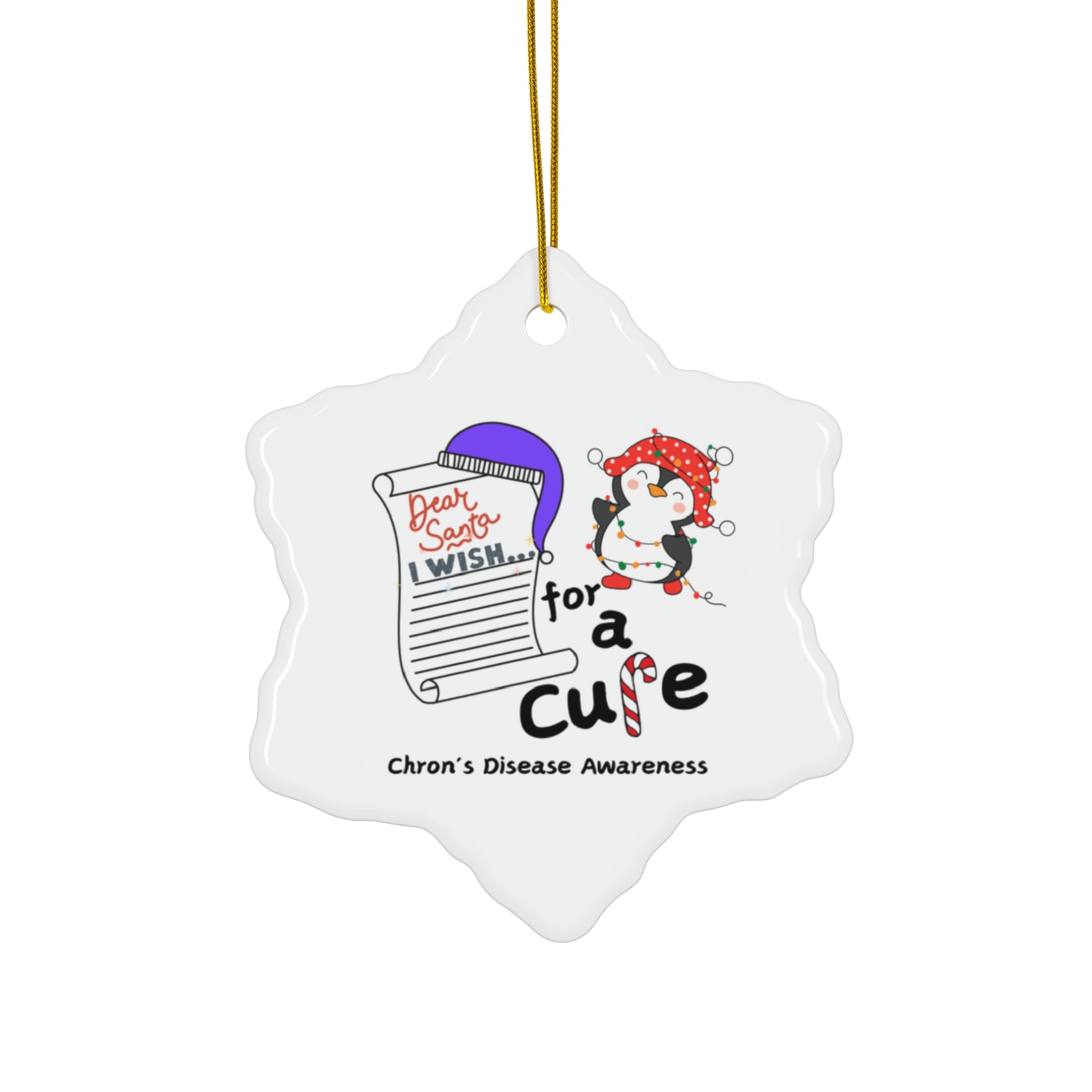 Chron's disease awareness ornament to make your tree hip, traditional, or funky to suit your unique style. These ornaments can be the perfect heirloom to use year after year, generation after generation. The ceramic ornaments are available in heart, star, snowflake, and round shapes for you to choose from.