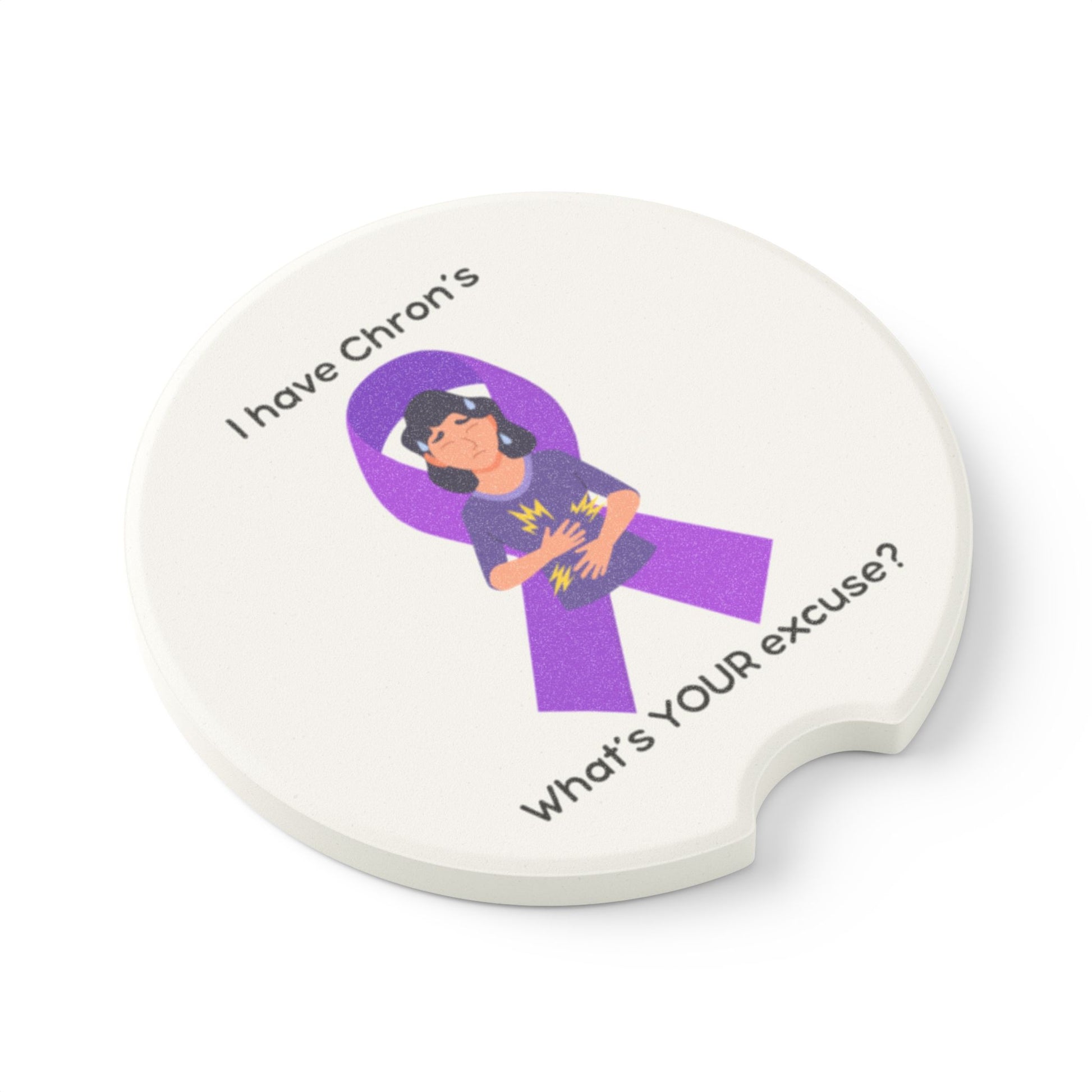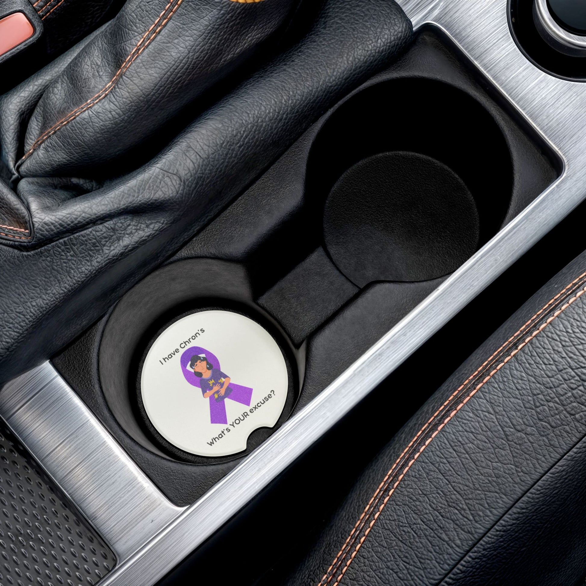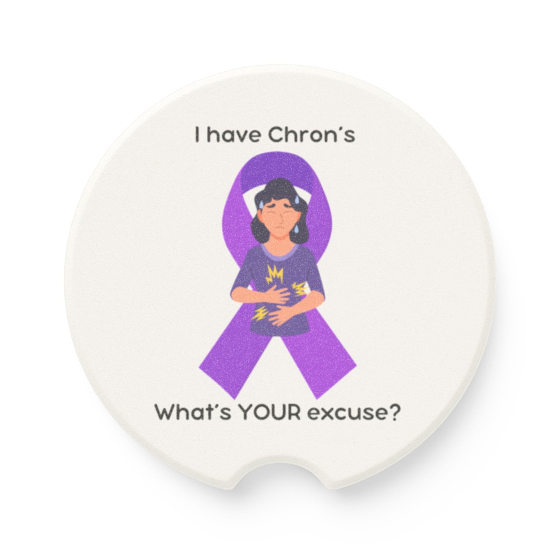 Crafted from highly durable and absorbent soapstone, these Chron's Disease Awareness car coasters blend custom looks and functionality in one neat package for every car. This must-have car accessory absorbs all moisture from your cold or hot en-route drinks and looks perfect in any car interior. Choose between 1pc or 2pcs to match your commuting needs.