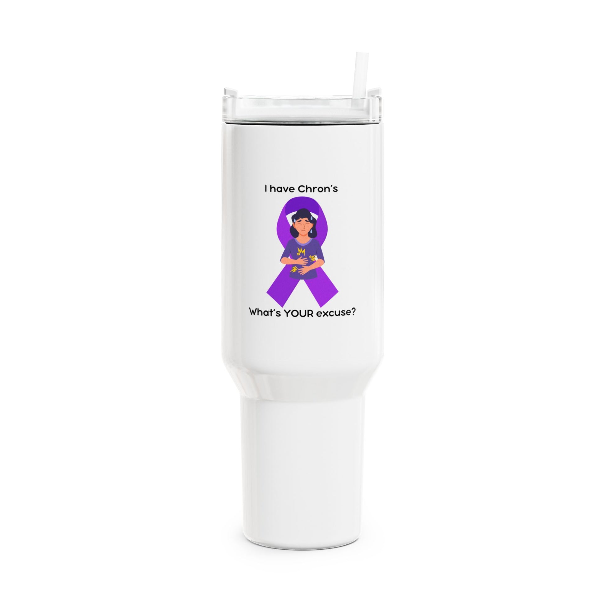 This Chron's Disease Awareness tumbler features a durable stainless steel construction with a sleek ORCA coating for added style and protection. Equipped with a plastic push-down lid, it ensures ease of use. The double-wall vacuum insulation keeps your beverages hot or cold for extended periods of time, making it perfect for any adventure, picnic, or BBQ night at your backyard.