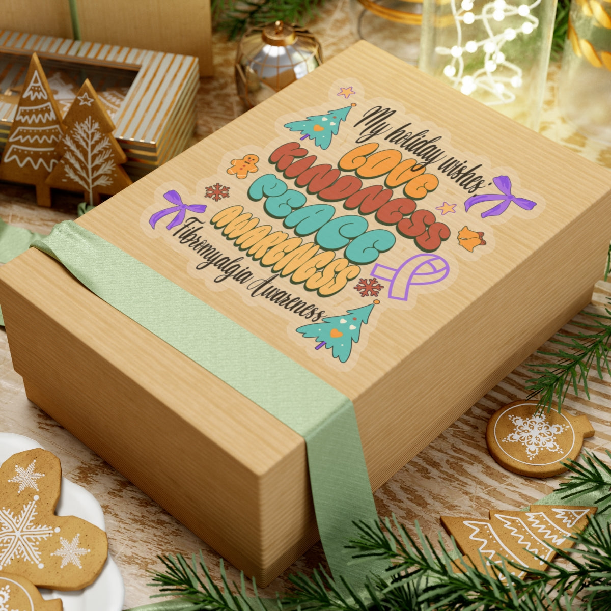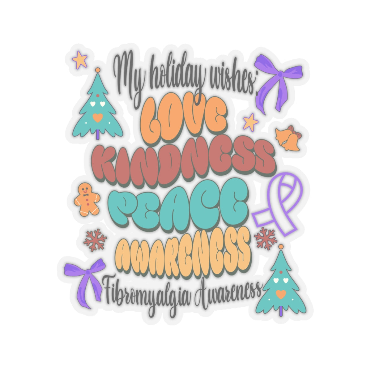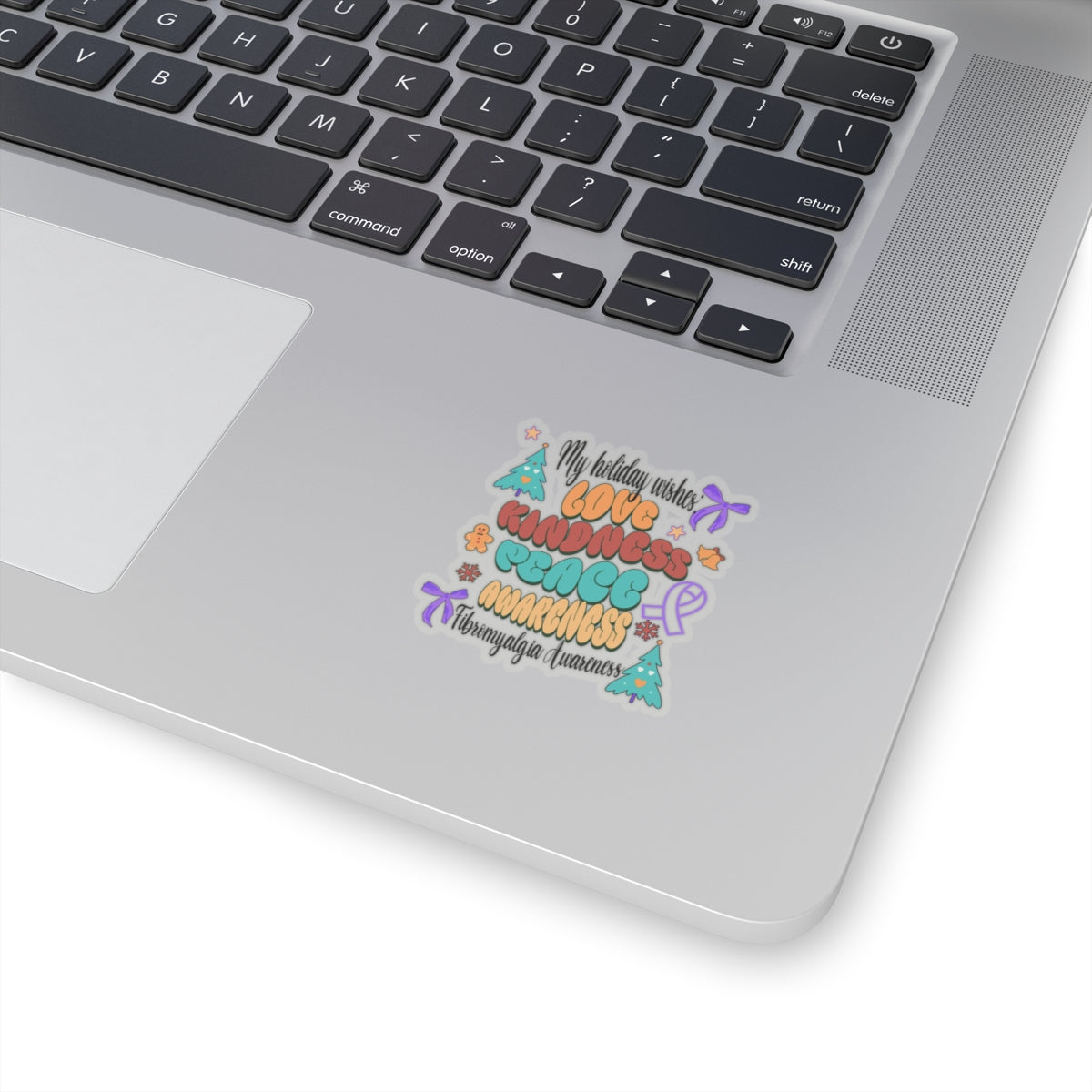 .: Fibromyalgia Awareness Holiday Wishes Stickers made 100% with durable vinyl that comes with strong 3M glue for decorations that last. Perfect for spicing up indoor decor (not waterproof).