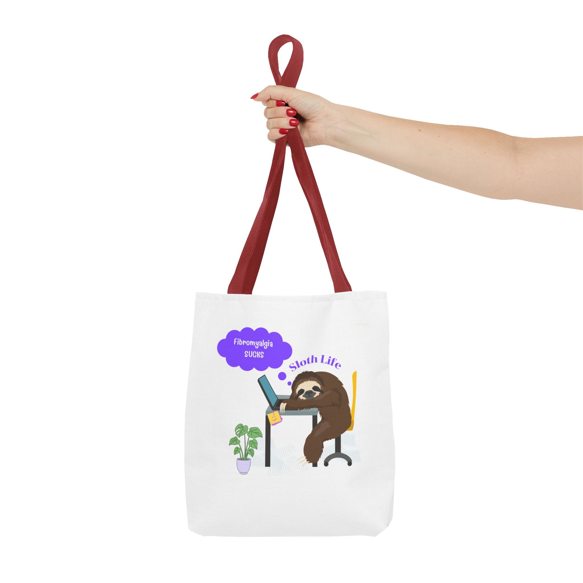 Available in 3 sizes to add both functionality and style, these Fibromyalgia Awareness tote bags come with multiple handle colors to match your style. Made with spun polyester, these bags feature double-stitched seams, cotton webbing straps, and nonwoven laminate lining for high-end durability.