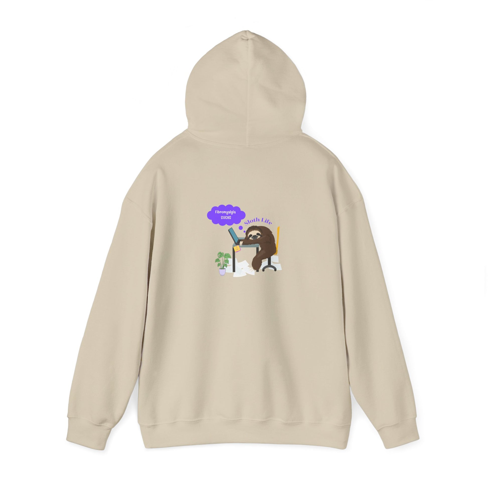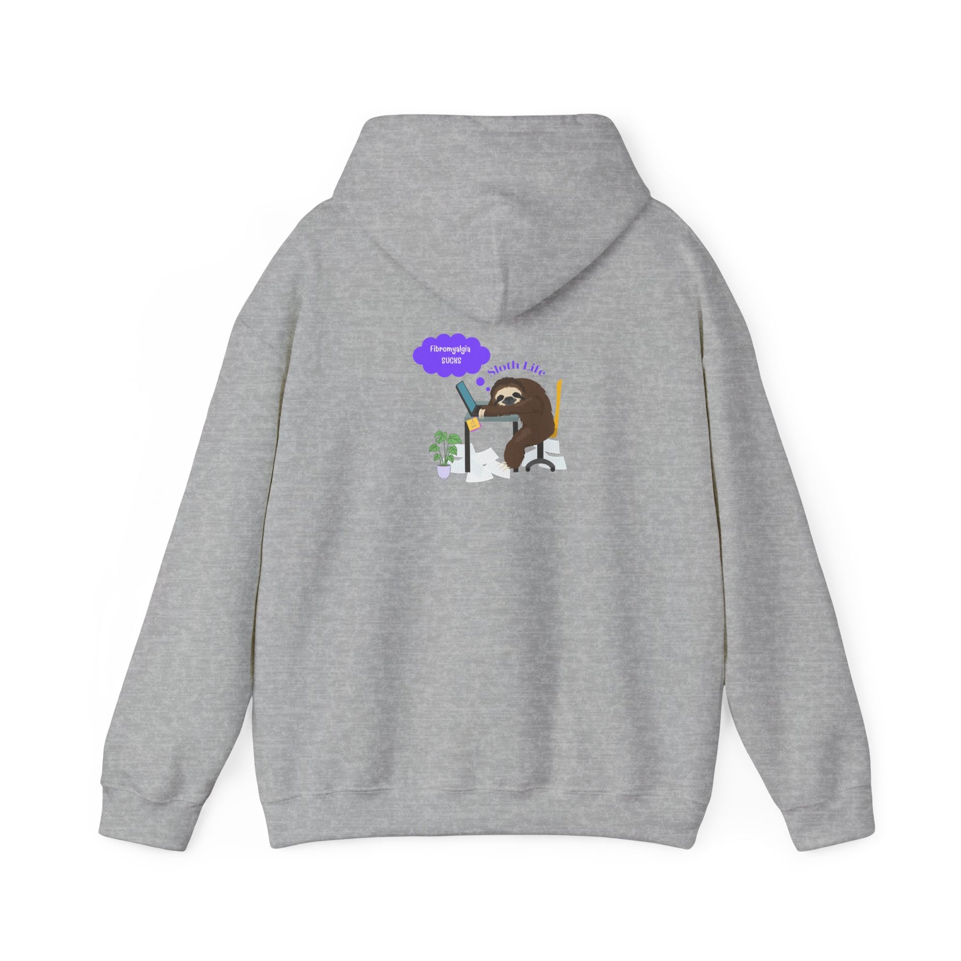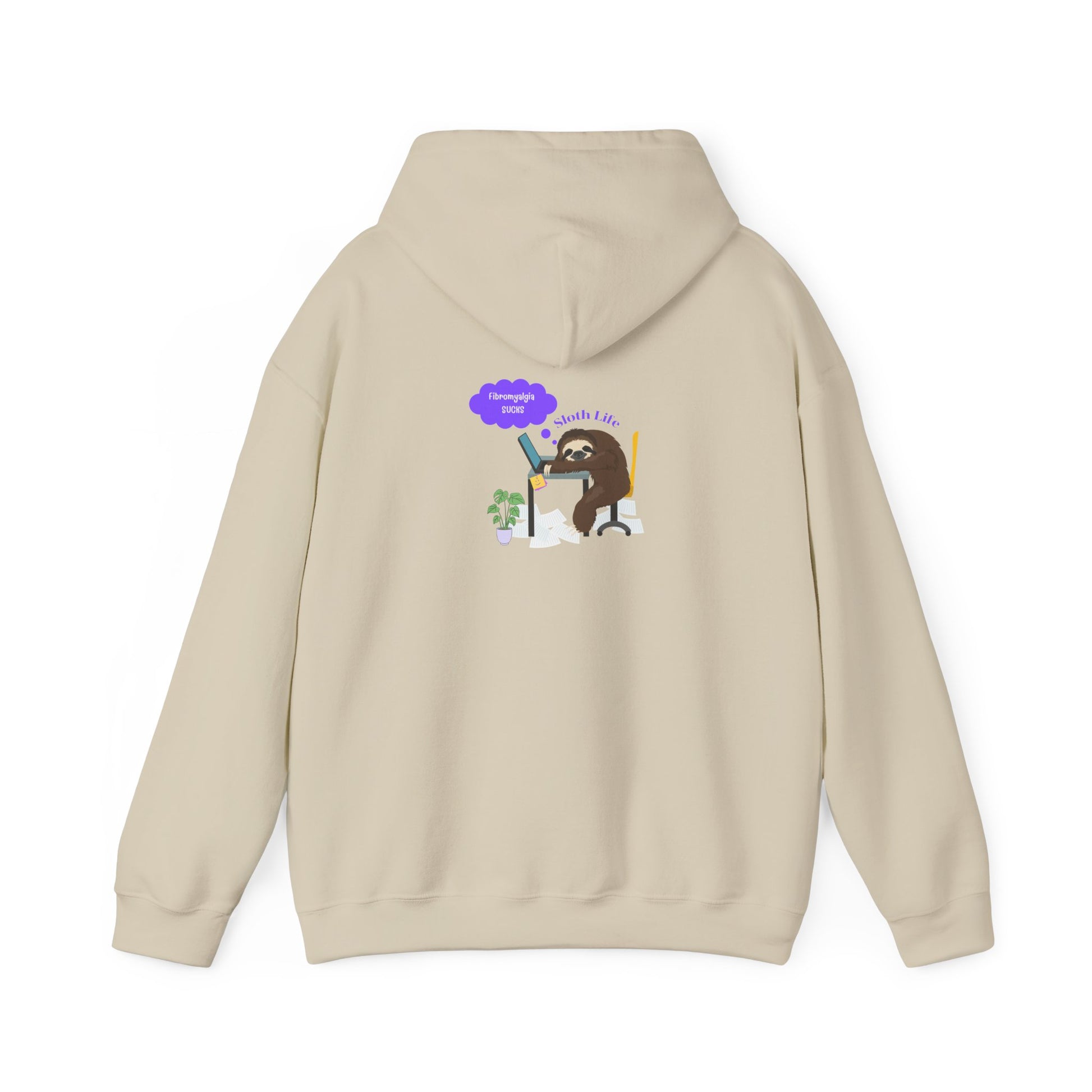 This unisex heavy blend Fibromyalgia Sucks hoodie is relaxation itself. Made with a thick blend of cotton and polyester, it feels plush, soft and warm, a perfect choice for any cold day. In the front, the spacious kangaroo pocket adds daily practicality while the hood's drawstring is the same color as the base sweater for extra style points.