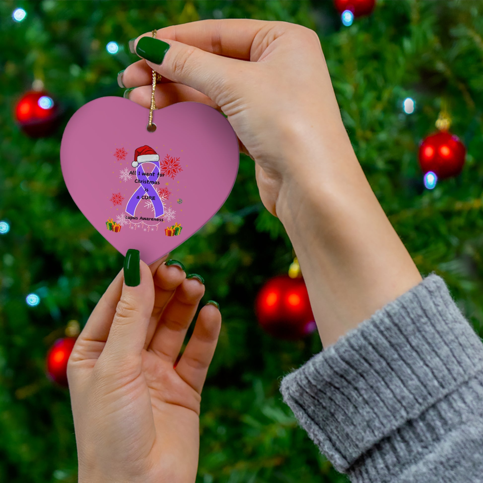 Lupus Awareness All I Want for Christmas Ceramic Ornament, 4 Shapes