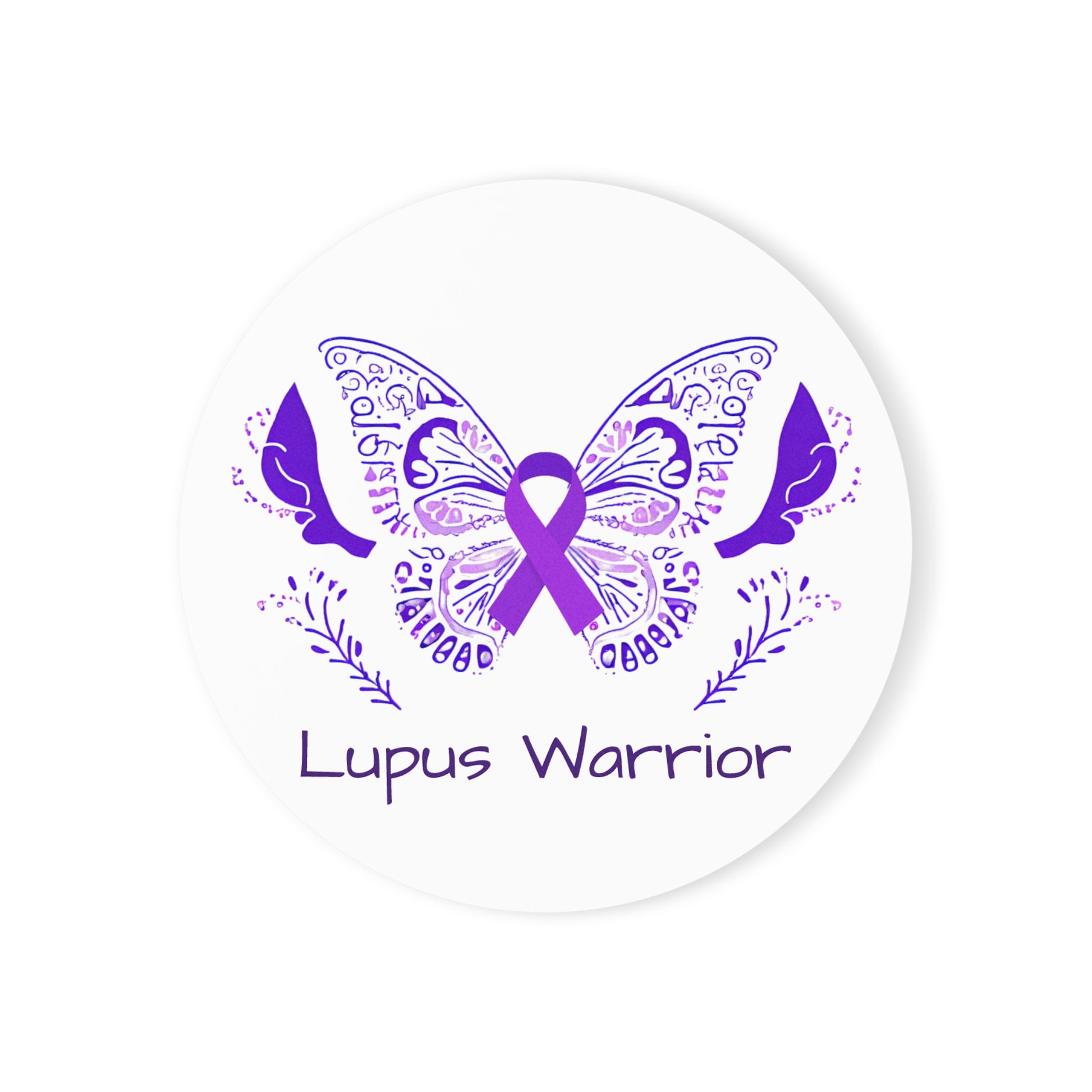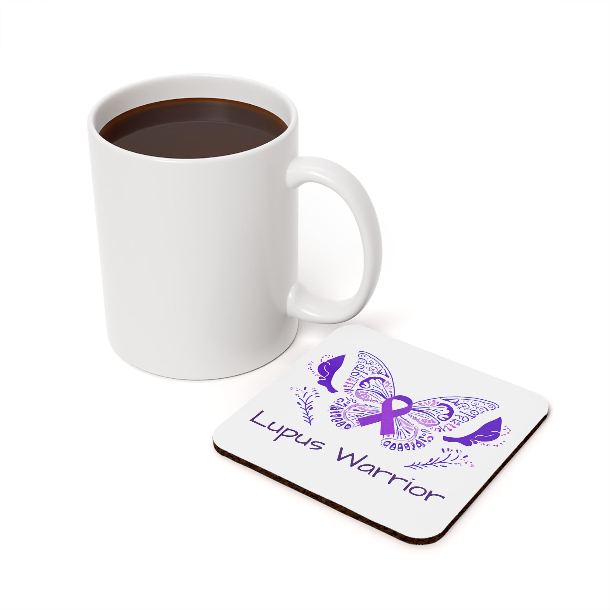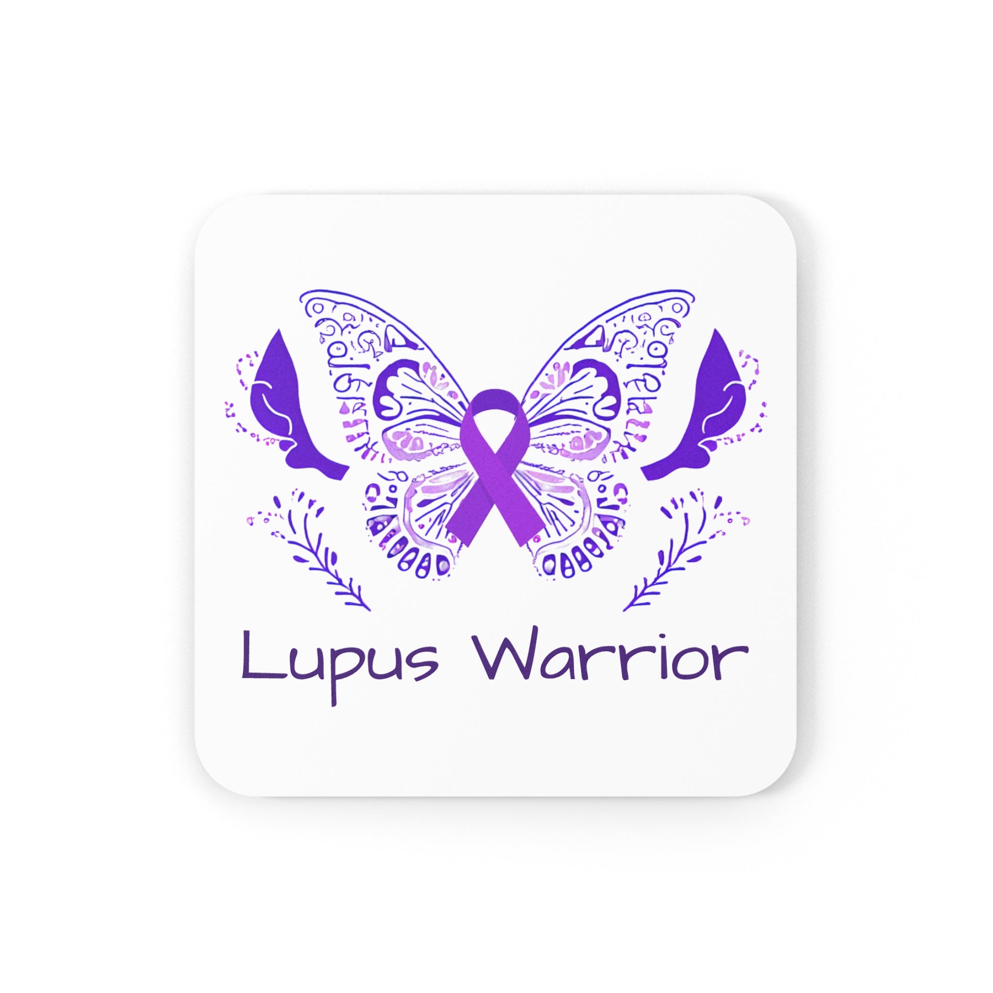 This Lupus Warrior coaster helps uplift any table while raising awareness. Each round and square coaster is made with a high-gloss, polyester-coated hardboard top, and features a genuine cork bottom to prevent sliding.