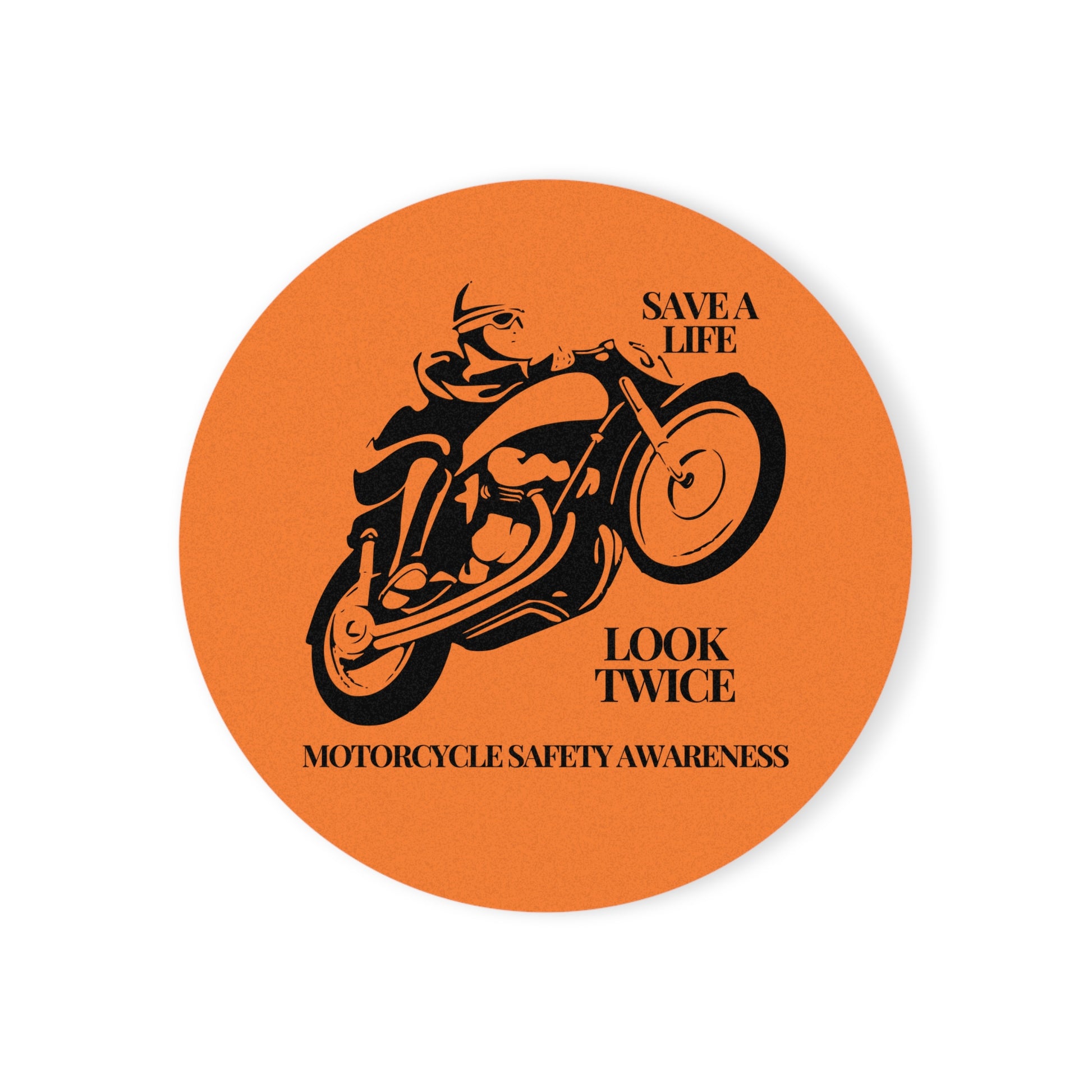 This Motorcycle Safety Awareness coaster helps uplift any table with a custom touch. Each round and square coaster is made with a high-gloss, polyester-coated hardboard top, and features a genuine cork bottom to prevent sliding.