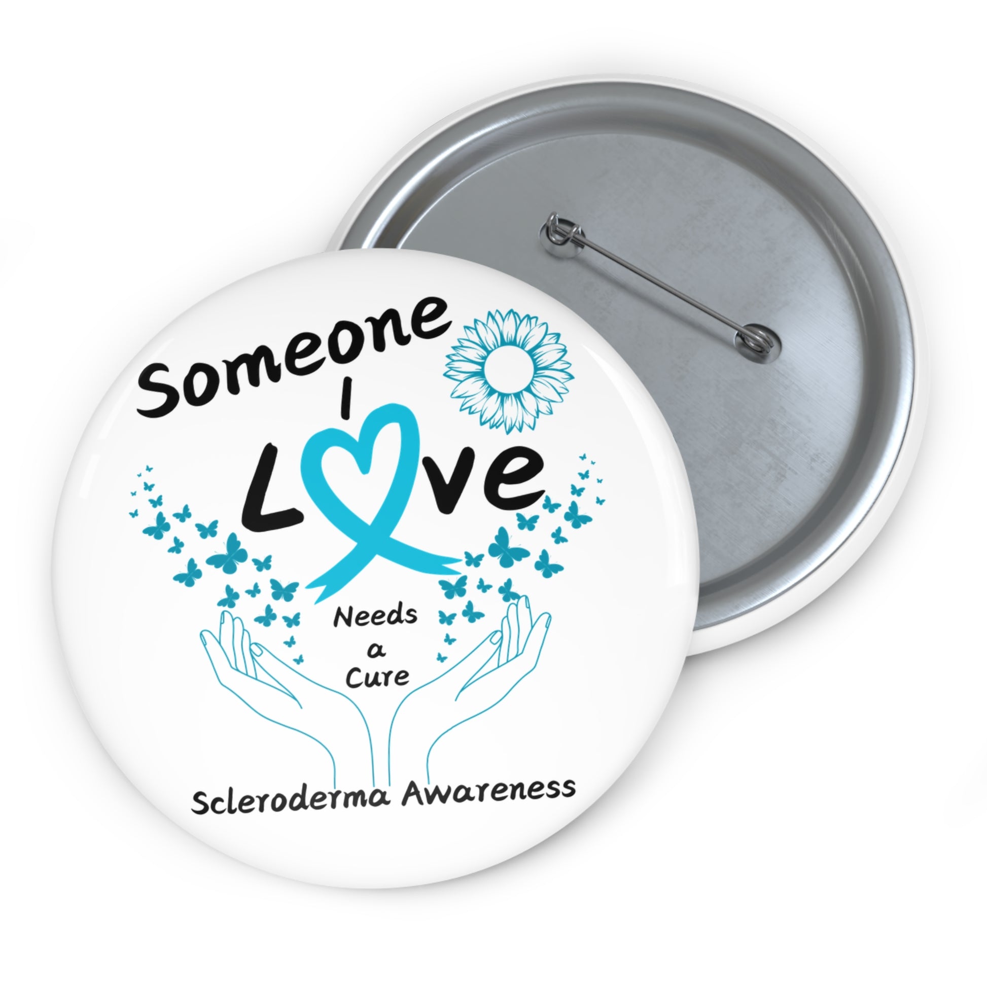 These Scleroderma Awareness Pin Buttons are made from metal, yet are lightweight and durable with a strong safety pin.
