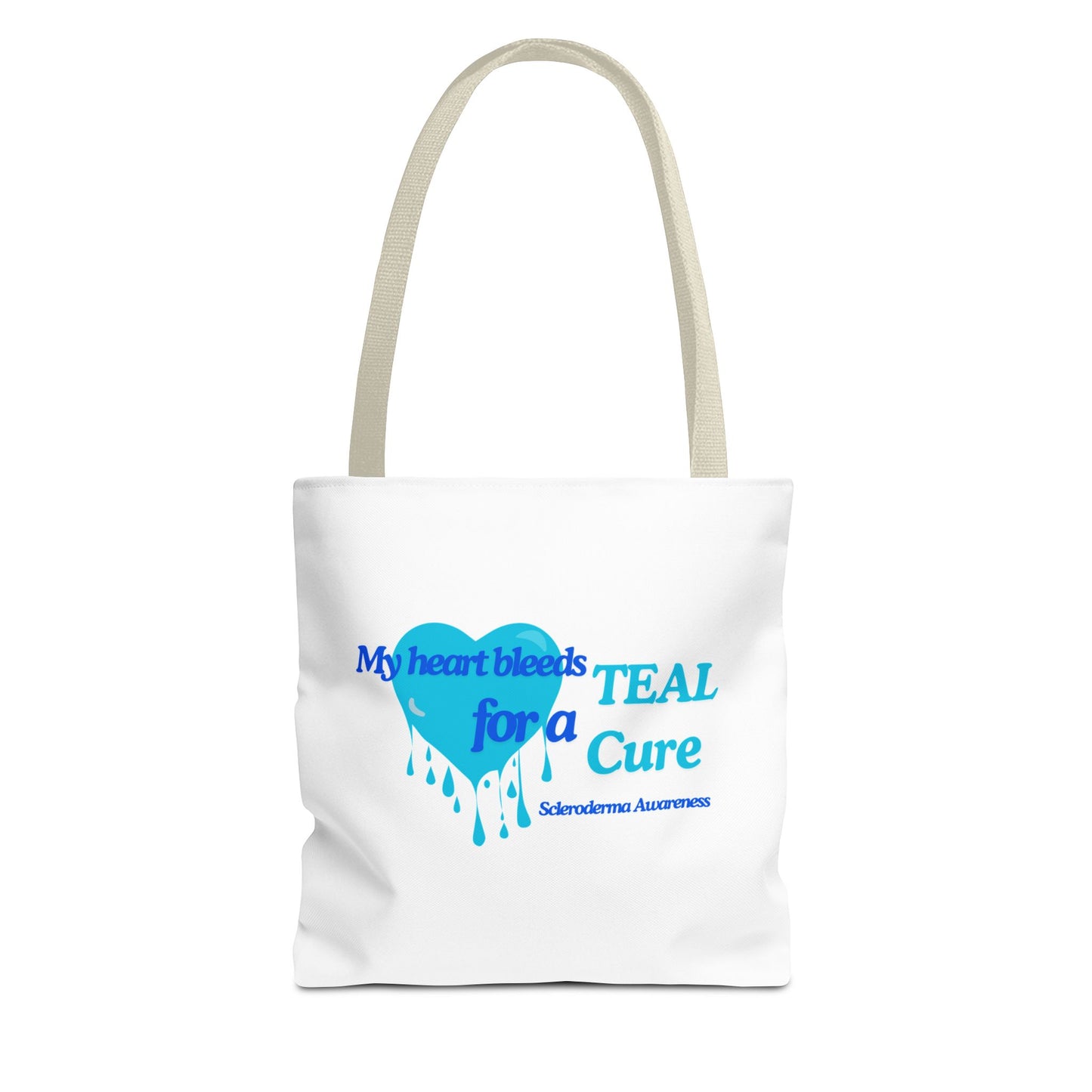 A tote bag that boasts both functionality and style, while raising awareness for scleroderma sufferers who still need a cure. These tote bags come with multiple handle colors to match your designs. Made with spun polyester, these bags feature double-stitched seams, cotton webbing straps, and nonwoven laminate lining for high-end durability. Created with dye sublimation for high-end visuals.