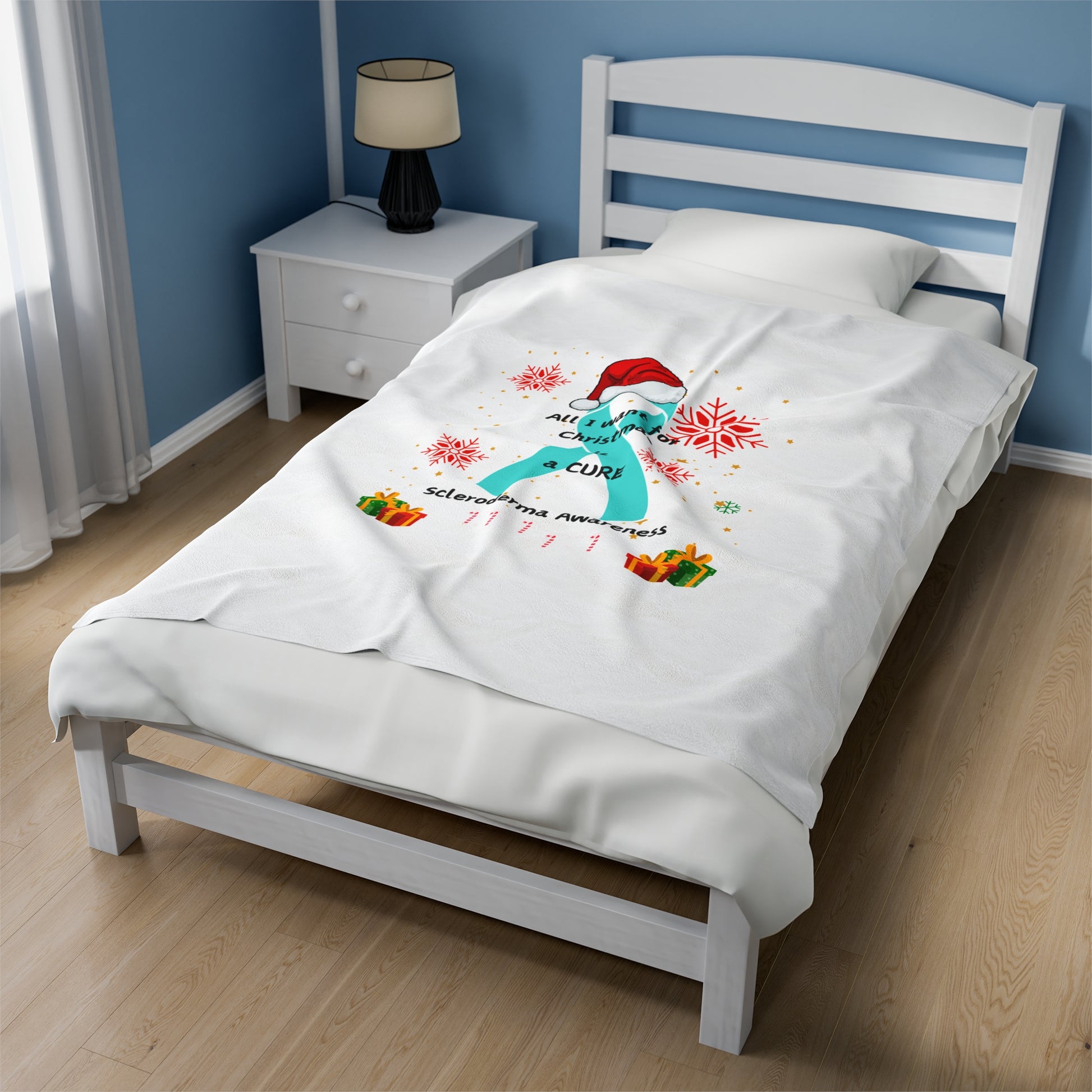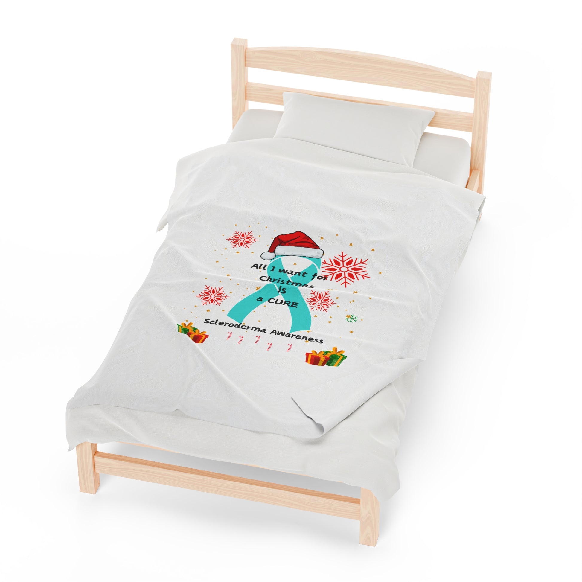 Scleroderma Awareness Velveteen Plush Blanket All I Want for Christmas is a Cure